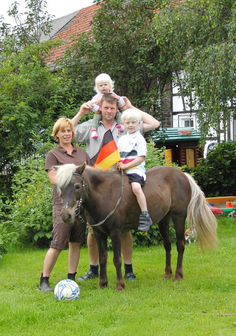 Mit den Hunden Nelly und Elva, den Ponies Safir, Briet, Vikingur und Ronja sowie einigen Katzen wird es nie langweilig.